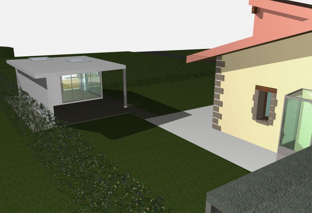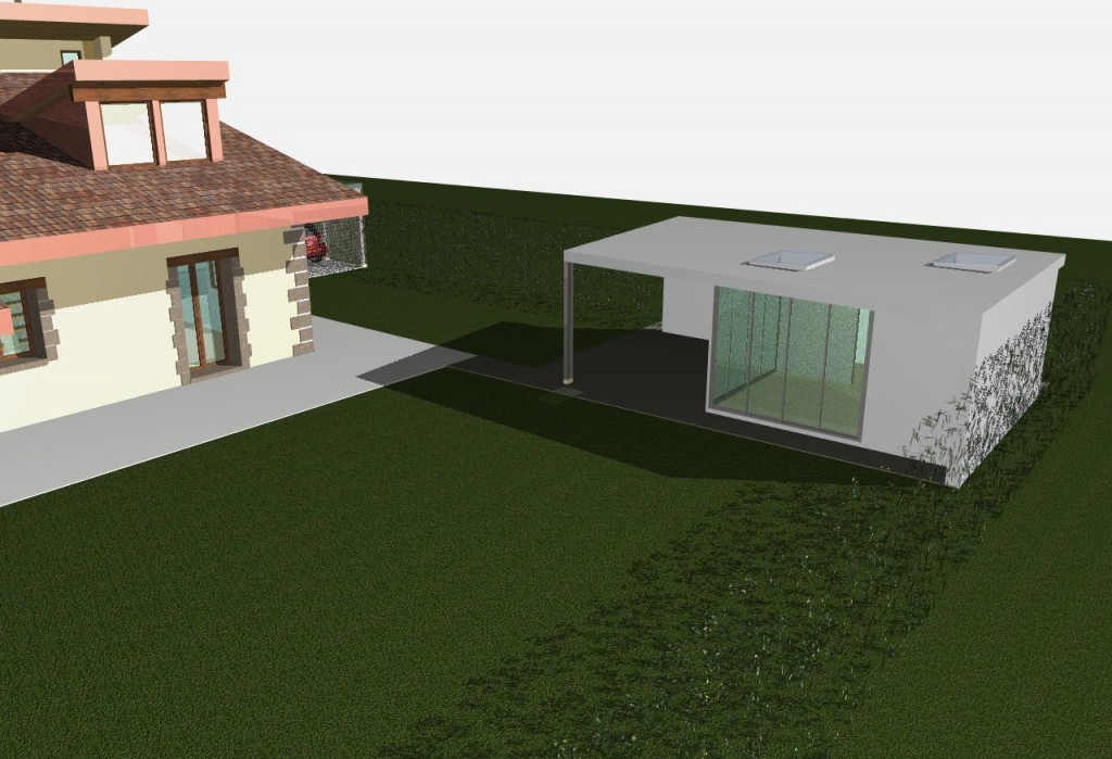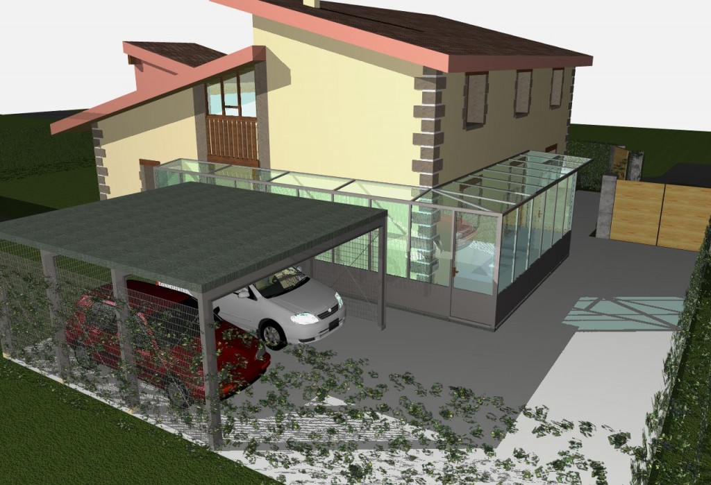 Création d’une verrière, création d’un réduit de jardin, remplacement du portique à voiture existant