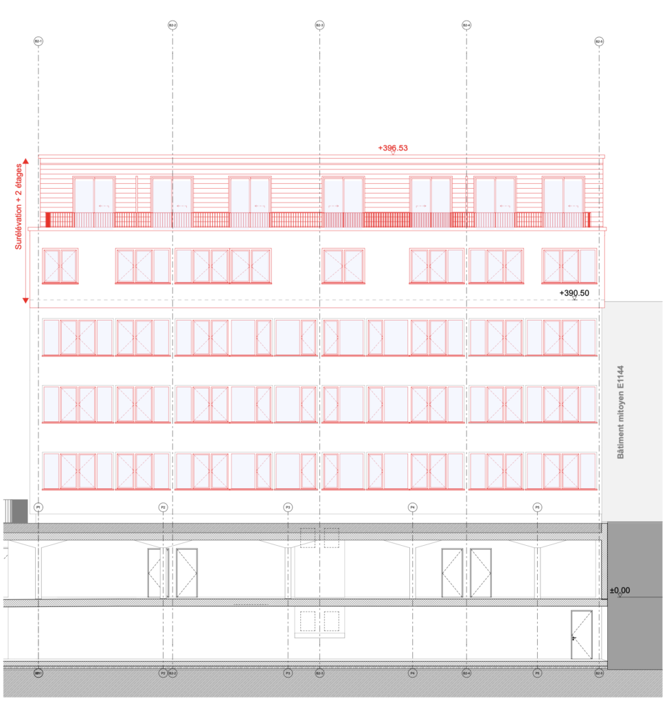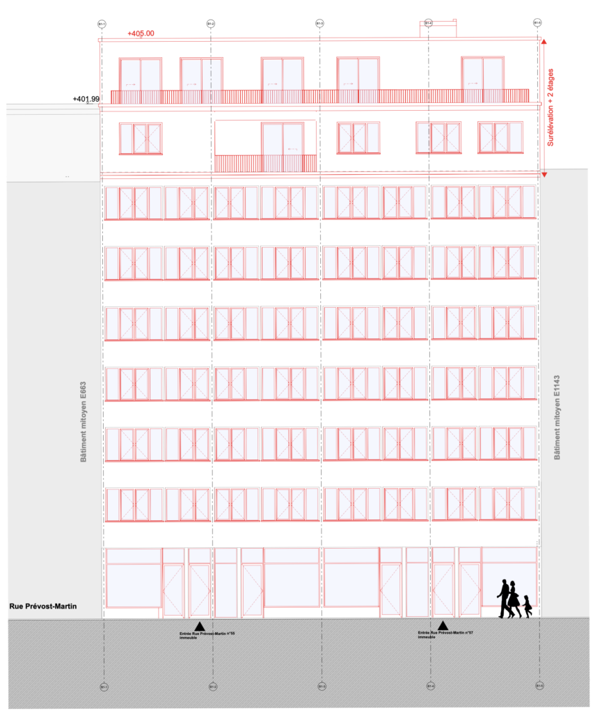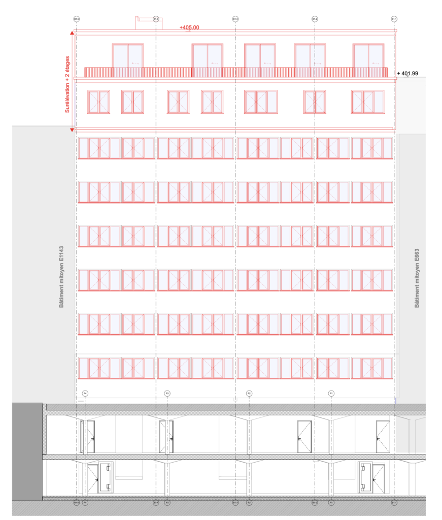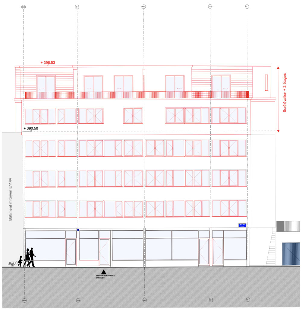 Surélévation de deux bâtiments sur deux niveaux supplémentaire et installation d’un ascenseur pour un bâtiment.